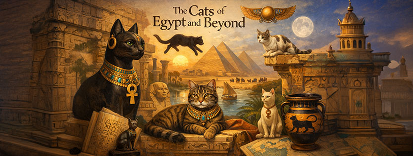 Today, cats have expanded their reach, becoming only second to dogs as the world’s favorite pet. Many continue to revere cats as earthly representatives of the divine and as bridges between worlds and dimensions. I’ll have to admit, that I do see something otherworldly in my cats’ eyes as they stare with pupils flashing, when I see nothing. They continue to be fearless hunters and have a protective sense—often comforting us with their purrs when we feel physical or mental disorder. They may have originated in the Middle East, but they have traveled with humankind to every distant point of the earth, appearing along the Silk Road to Asia and India, on ships to North and South America, and kept as loving pets in Europe and beyond. The only continent they don’t appear is Antarctica, and they would probably follow us there, if provided with warmth and sustenance. If cats are nothing else, they are adaptable—calculating possibilities and knowing a good thing when they see it.